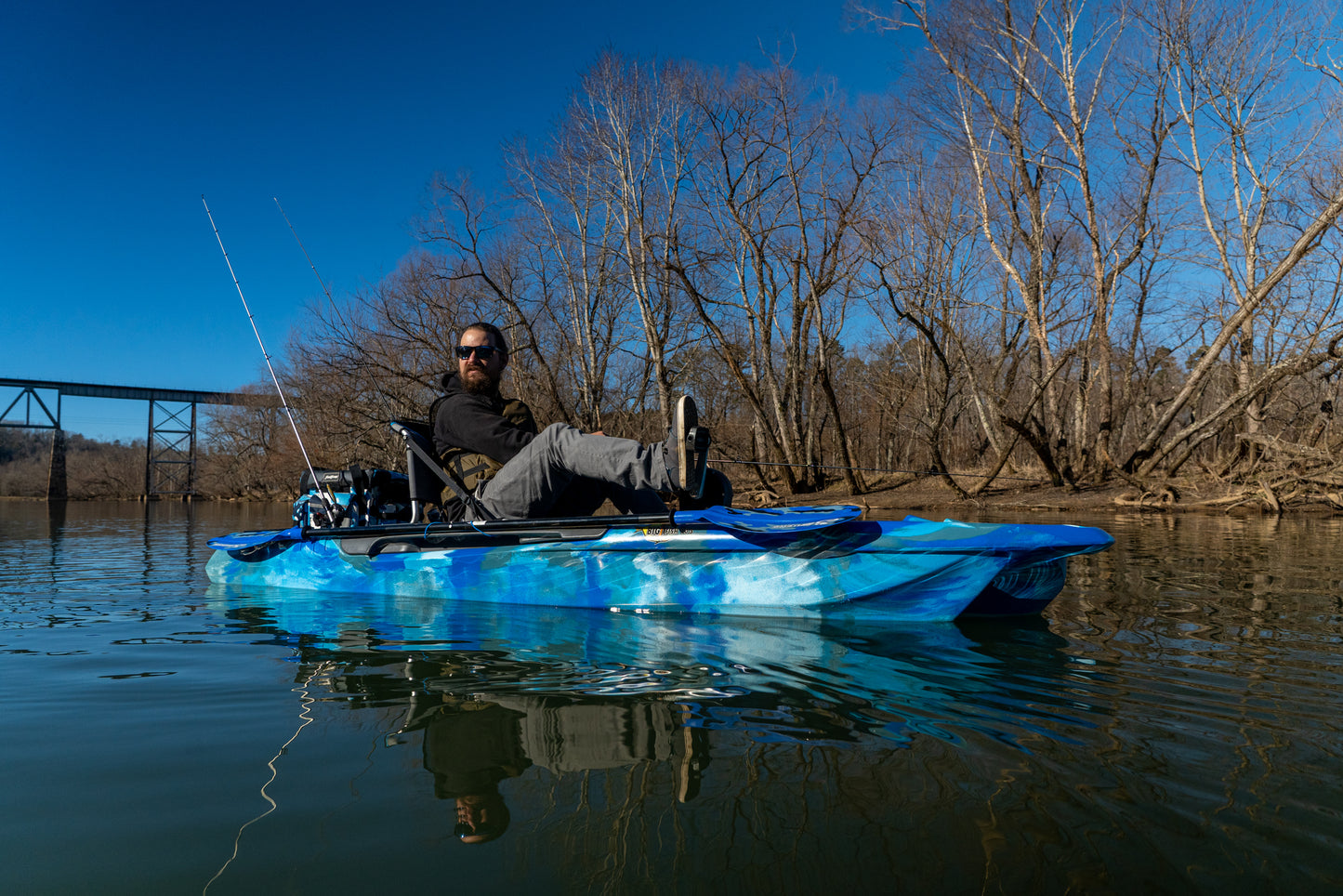 Regular price $1,499.00The Big Fish 103 was specially designed to accommodate the Pro Fish Pedal Drive, featuring the intuitive 8 Ball steering system and the oversized Beaver Tail rudder for the ultimate hands-free propulsion experience. Combine that with our Cathedral trimaran hull design, and the Big Fish 103 offers industry leading stability whether you're fishing for trophies, or on a leisure day, pedaling with friends and family. The Big Fish 103 also features the EZ Rider Seat which offers all day comfort.