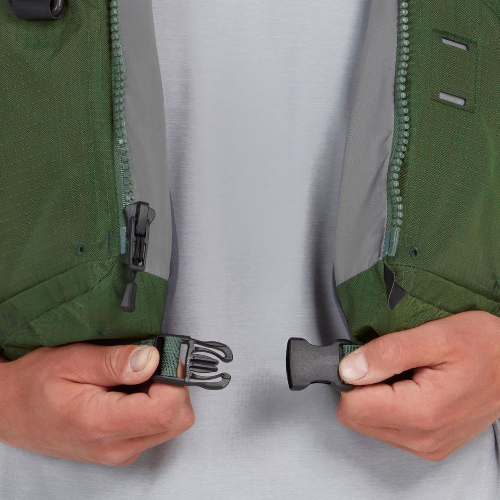 - YKK® zipper entry plus adjustments on shoulders, side and waist secure the life jacket and provide a custom fit.
