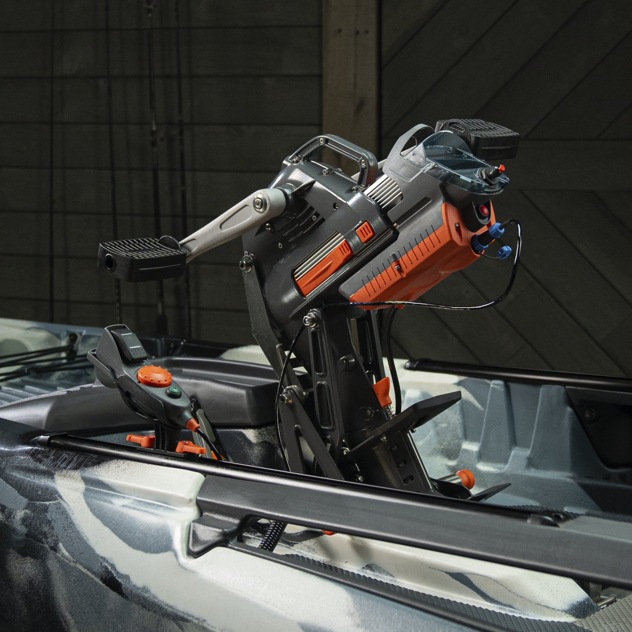 When paired with your Overdrive Pedal System (required), the Motordrive instantly transforms your pedal kayak into an all-in-one patented motor and pedal kayak, delivering a seamless paddle > pedal > power experience. What sets the Motordrive + Overdrive apart is its unique ability to switch from pedal to power with just one click. Simply insert the motor into the pedal housing, and in an instant, your pedals disengage, and you're ready to go! The motor is controlled by a hand remote, allowing you to move forward and reverse and adjust your speed, so you can sit back and relax while the Motordrive does all the work. This combination offers recreational paddlers and anglers the ultimate all-day paddle, pedal, and power adventure.